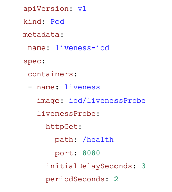 In the configuration file below, I have configured the kubelet to perform a liveness probe every two seconds. I have also added an initial delay of three seconds in performing the first probe. If the request returns an error code, the kubelet will terminate the container and automatically restart it.
