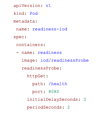 I would highly recommend that you add the liveness and readiness probes to your deployment so that Kubernetes can take action in an automated fashion if the application is not healthy. You can add both these probes to the “containers” section of the pod specification.